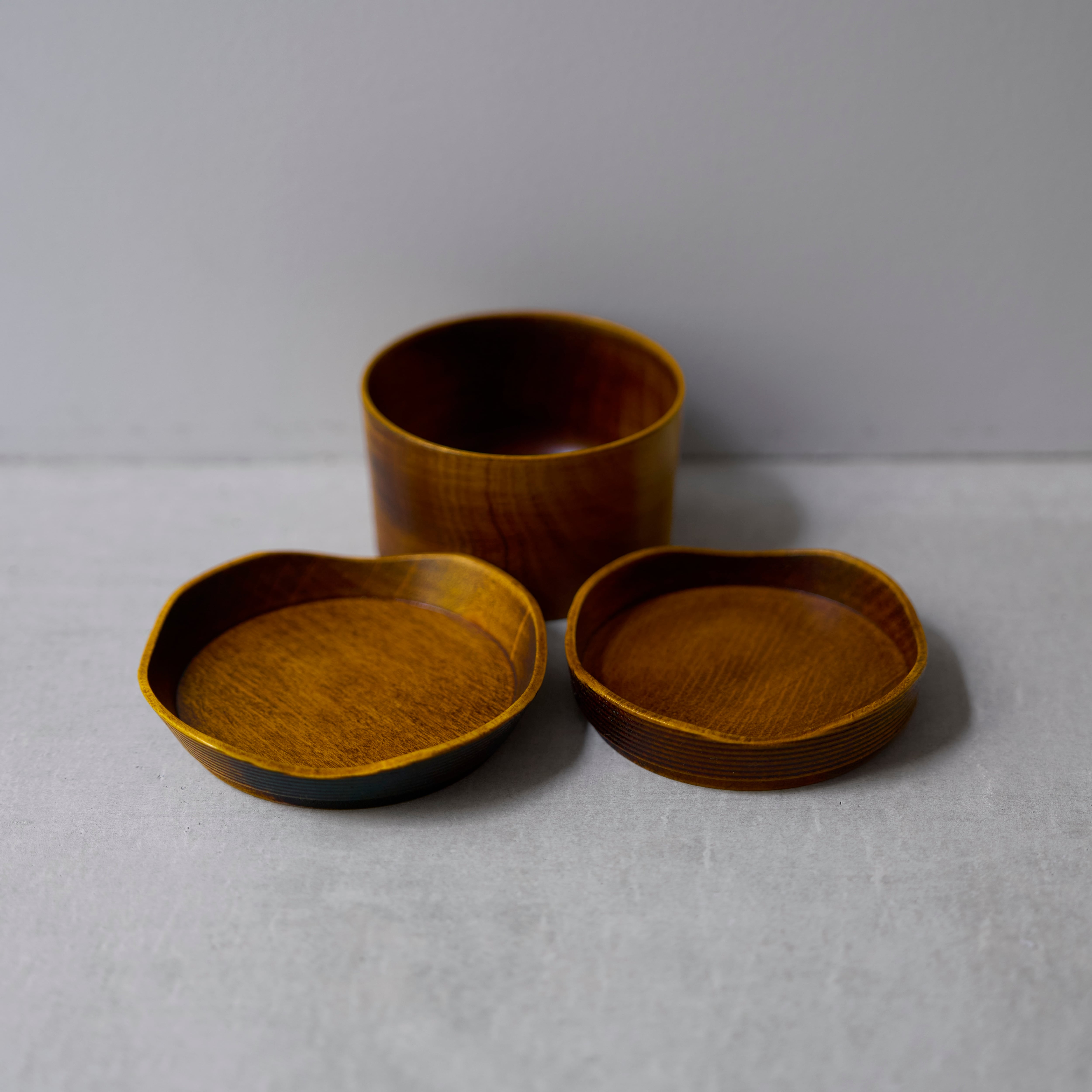 台:Φ85x H50mm 皿小:Φ90xH20mm 皿大:Φ100xH20mm 天然木(ハンノキ)