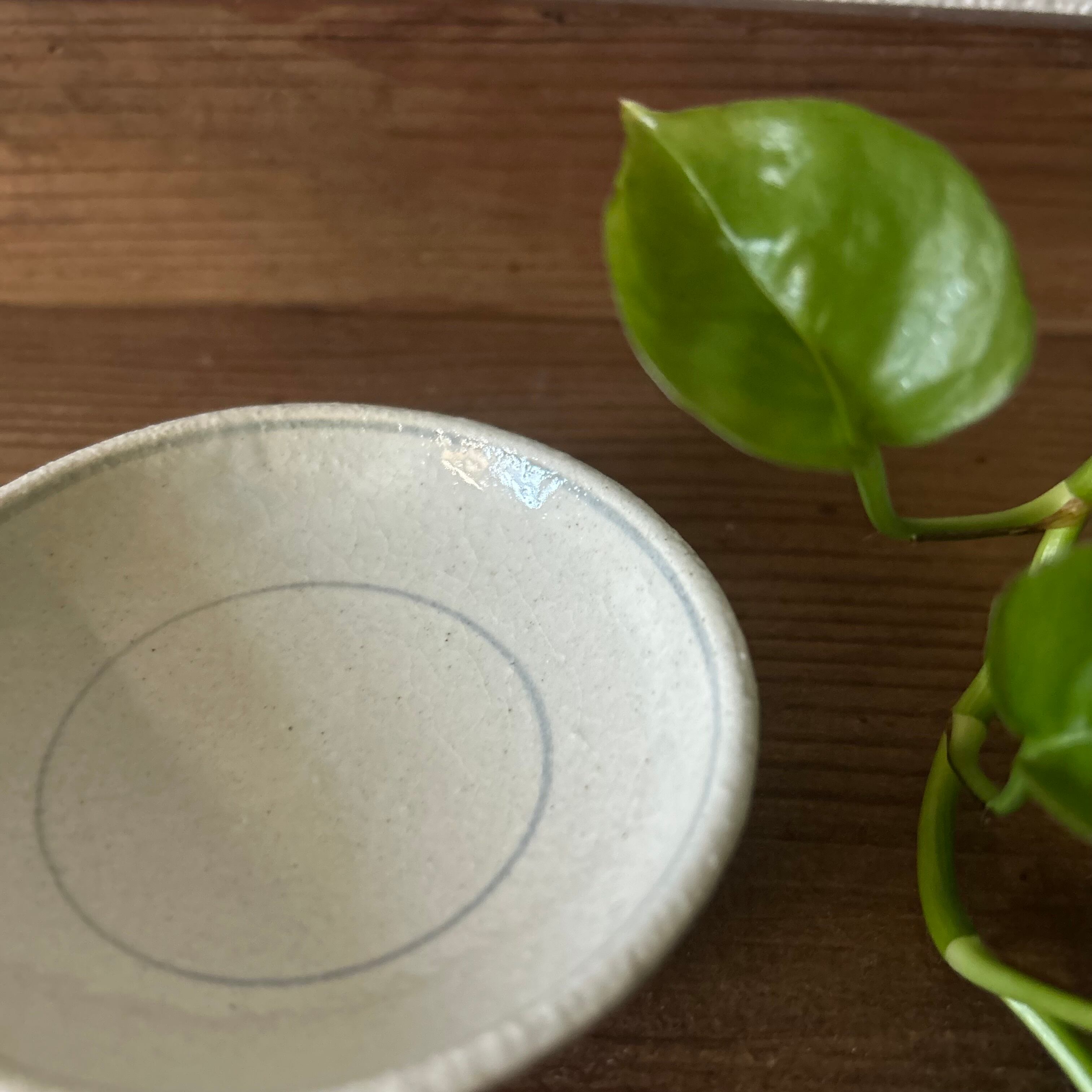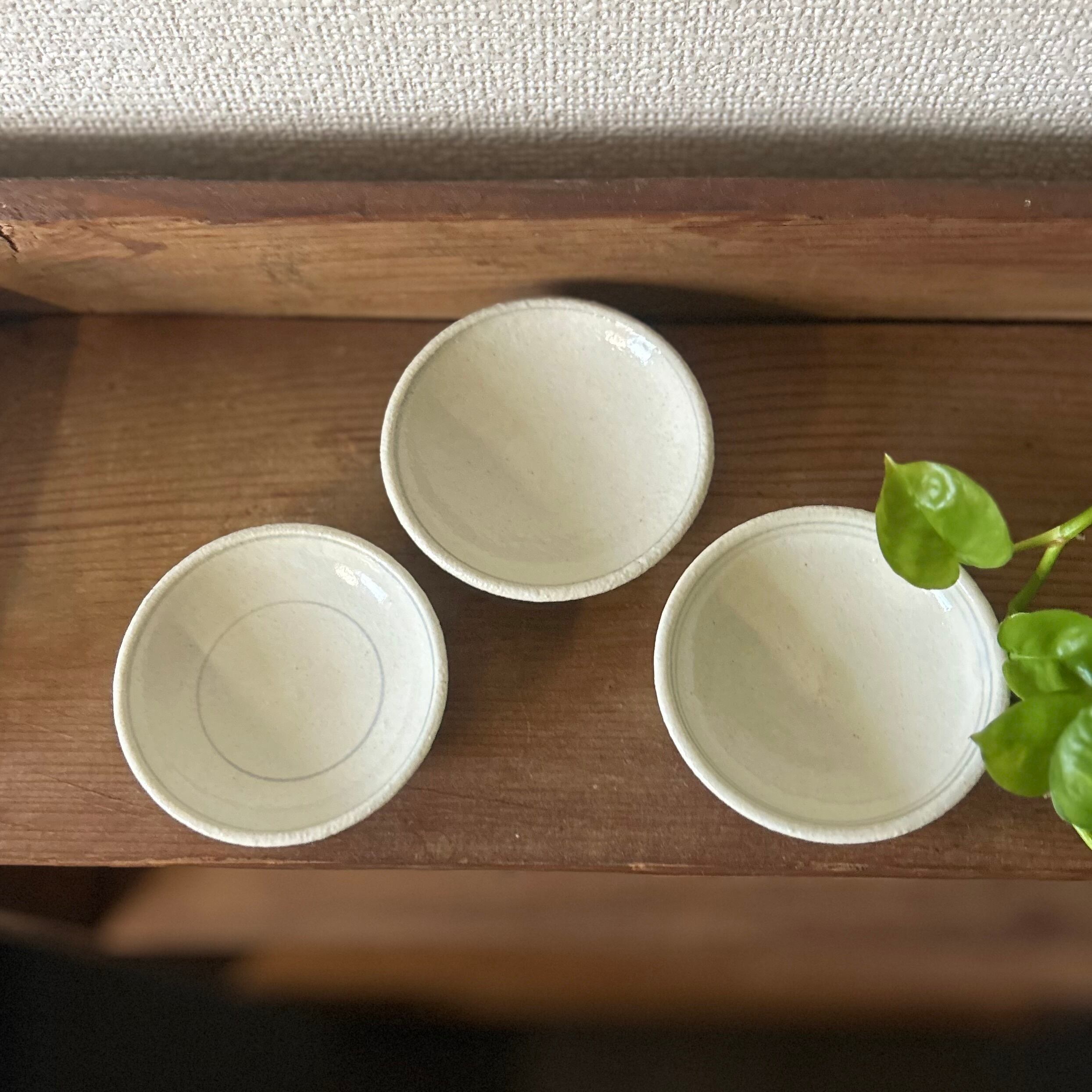 Takizawa Nanaさんの豆皿No.2。 こちらはブルーのラインが2本、内側と外側に入っています。